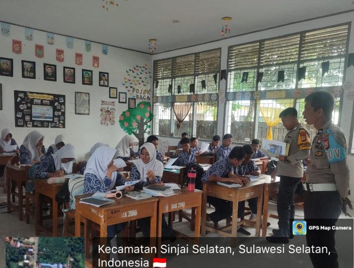 Polsek Sinjai Selatan Sosialisasikan Penerimaan Siswa Baru SMA Kemala Taruna Bhayangkara di SMPN 2