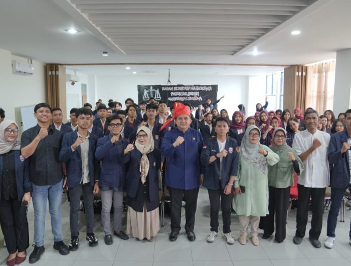 “Sebagai mahasiswa Fakultas Hukum, tidak usah terlalu banyak berteori karena semua itu sudah diperoleh dalam kegiatan akademik,” ujranya.