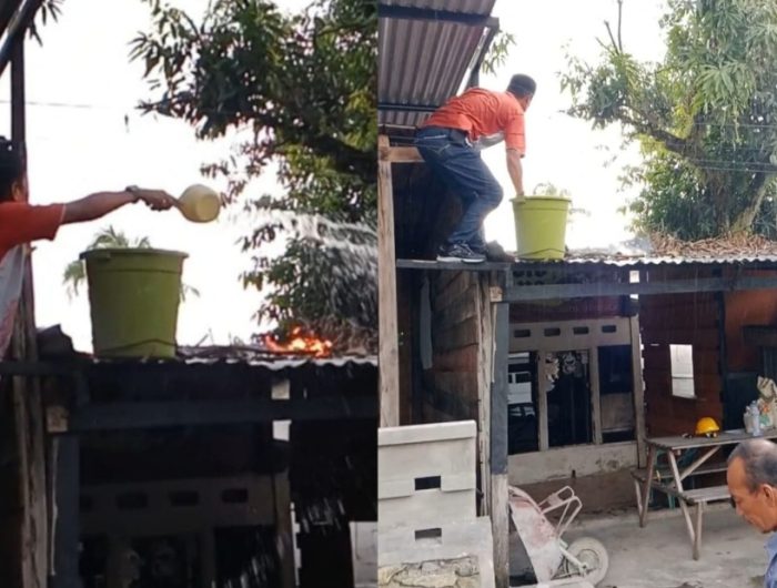 Mereka menyiram api berulang kali, dibantu warga sekitar, hingga akhirnya api berhasil dipadamkan.