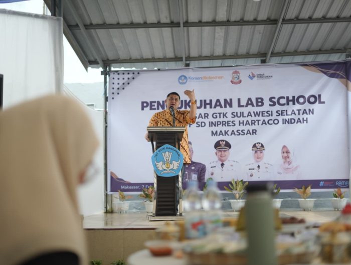 Penegasan tersebut disampaikan Munafri Arifuddin, yang akrab disapa Appi, saat memberikan sambutan sekaligus menandatangani prasasti pengukuhan Lab School Balai Besar Guru UPT SPF SD Inpres Hartaco Indah dan Tenaga Kependidikan Provinsi Sulawesi Selatan, yang berlokasi di Jalan Daeng Tata, Kompleks Hartaco Indah, Kota Makassar, Sabtu (7/2/2026).