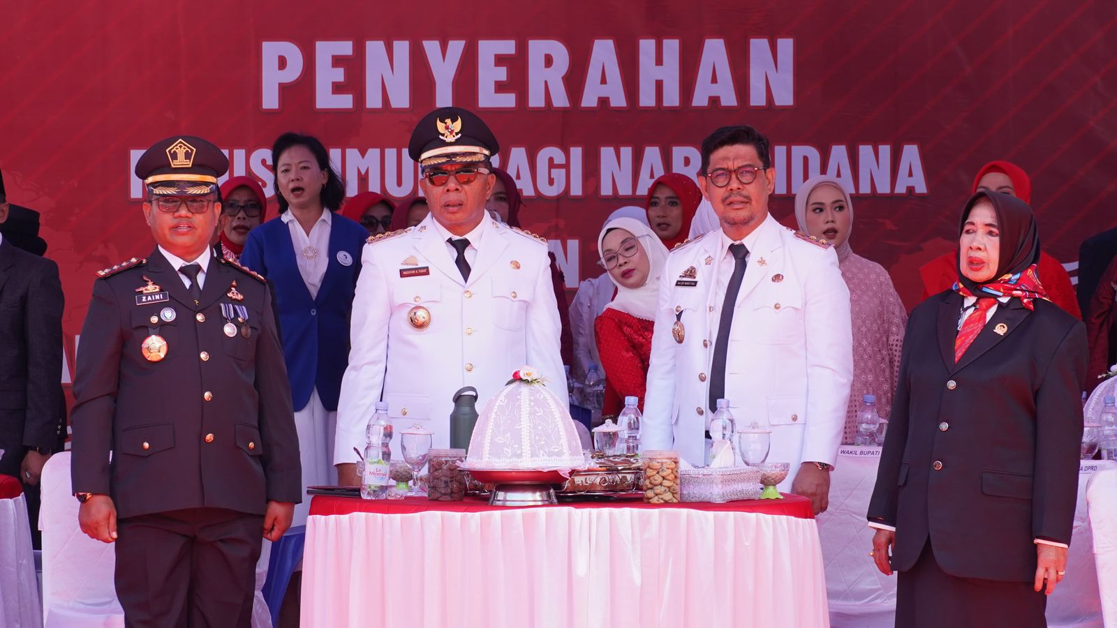 Setelah menyerahkan remisi secara simbolis Andi Utta sapaan akrab bupati membacakan sambutan Menteri Hukum dan Hak Asasi Manusia (Menkumham), Yasonna H. Laoly.