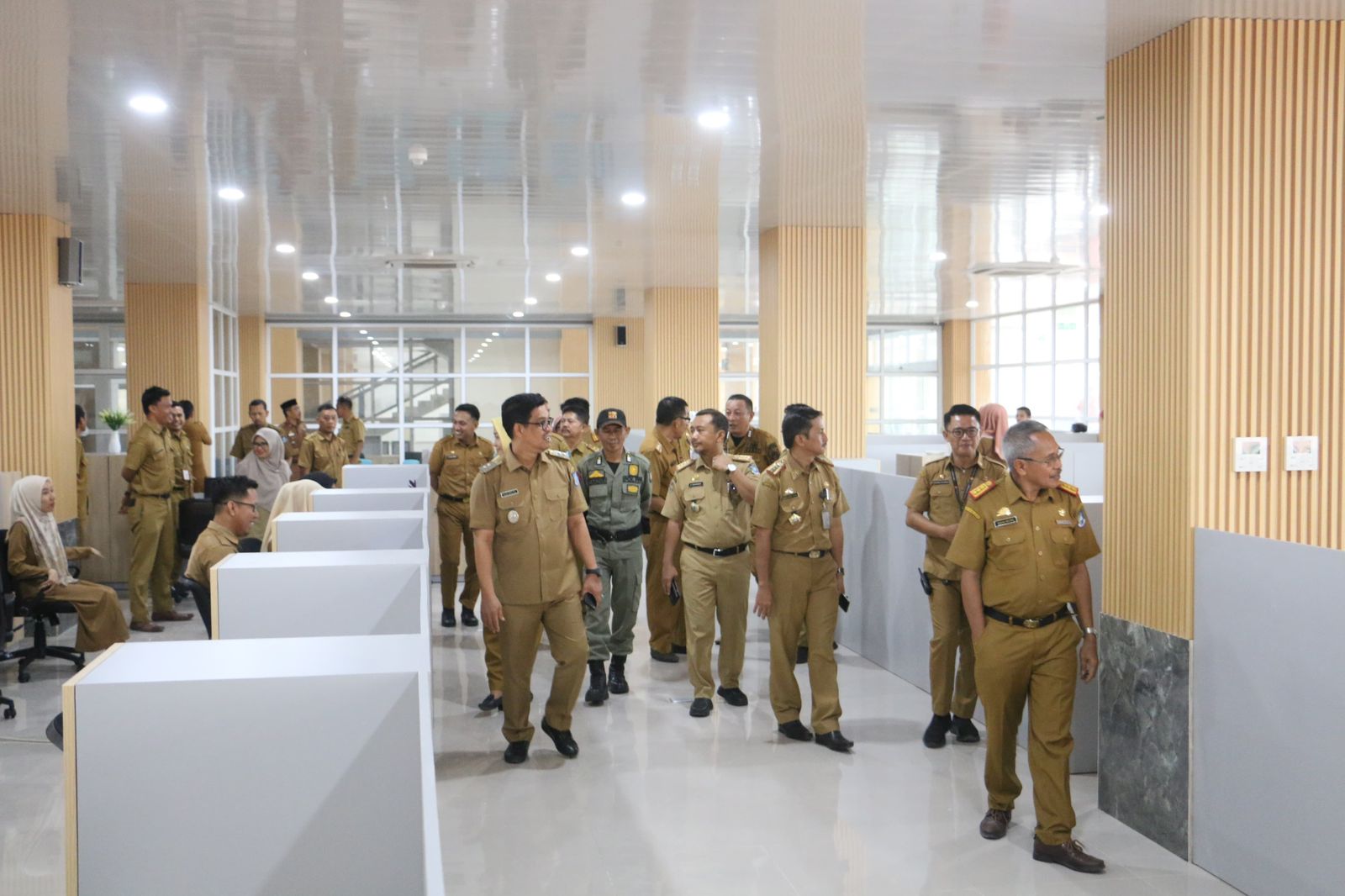Wabup Edy Manaf mendatangi satu persatu ruangan OPD, baik di lantai 2 maupun lantai 3 termasuk meninjau aula pertemuan di top floor Gedung Pinisi.