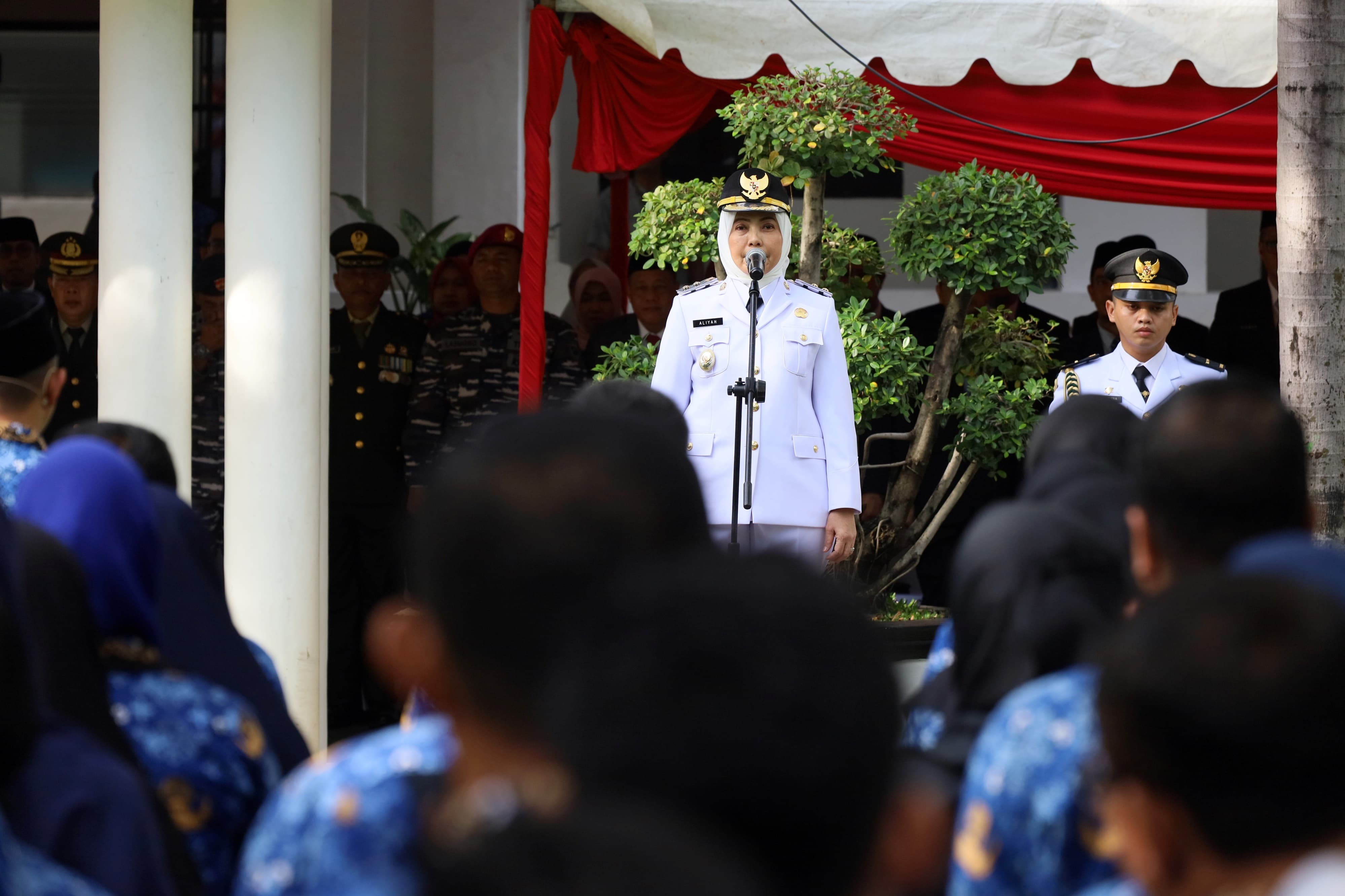 Wakil Wali Kota Makassar, Aliyah Mustika Ilham bertindak selaku Pembina Upacara dan menyampaikan pentingnya memperkuat sinergi antara pemerintah pusat dan daerah dalam mewujudkan Indonesia Emas 2045.