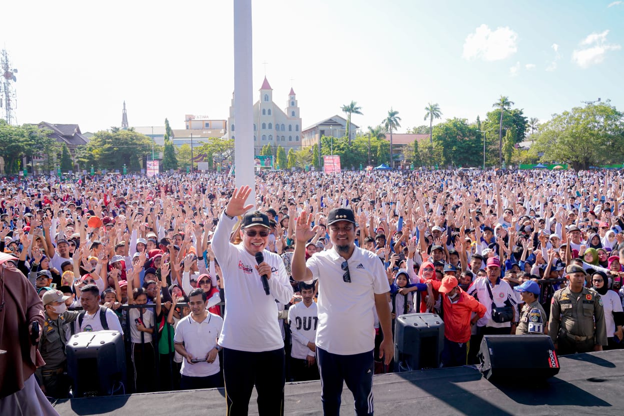 BERITA.NEWS,Parepare- Gubernur Andi Sudirman Sulaiman dan Wali Kota Taufan Pawe nampak kompak mengikuti jalan sehat Anti Mager di Kota Parepare. Selasa (29/8/2023).