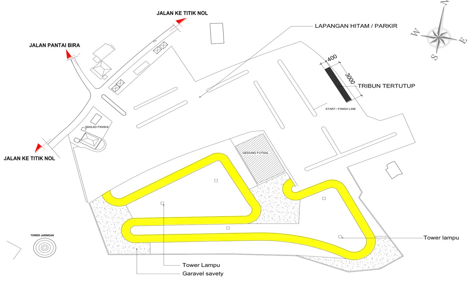 Jika lintasan ini nanti digabung dengan lintasan yang berada di lapangan Hitam maka panjang lintasan mencapai 1,2 kilometer.