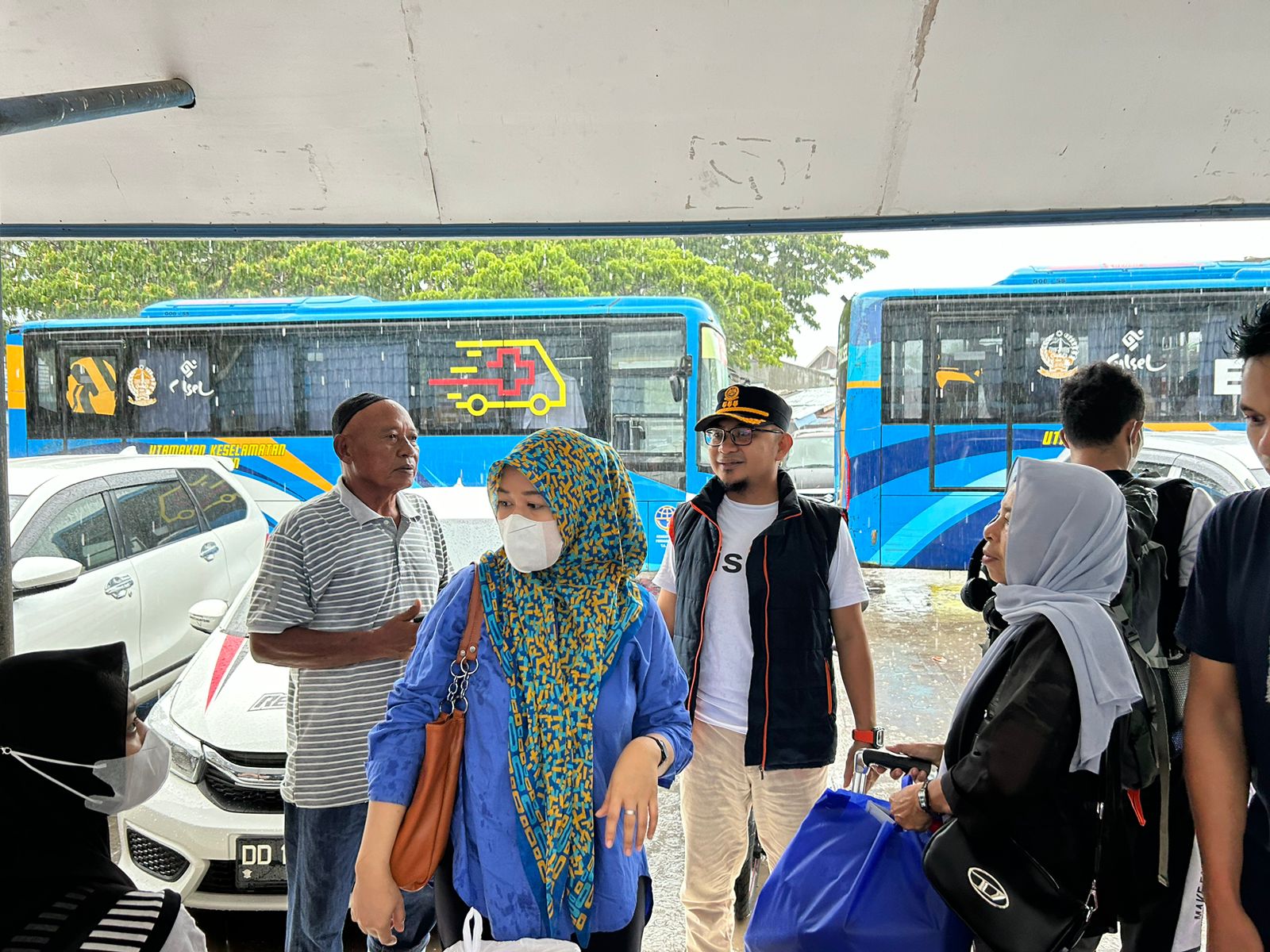 Sekretaris Dinas Perhubungan Bulukumba, Idham Patunru turut memantau kedatangan armada bus mudik gratis di terminal.