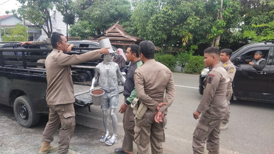 BERITA.NEWS, Sinjai — Aktivitas seorang pria bertubuh silver yang kerap berdiri perempatan lampu merah Tugu Bambu, Jalan Persatuan Raya, Kecamatan Sinjai Utara, akhirnya dihentikan.