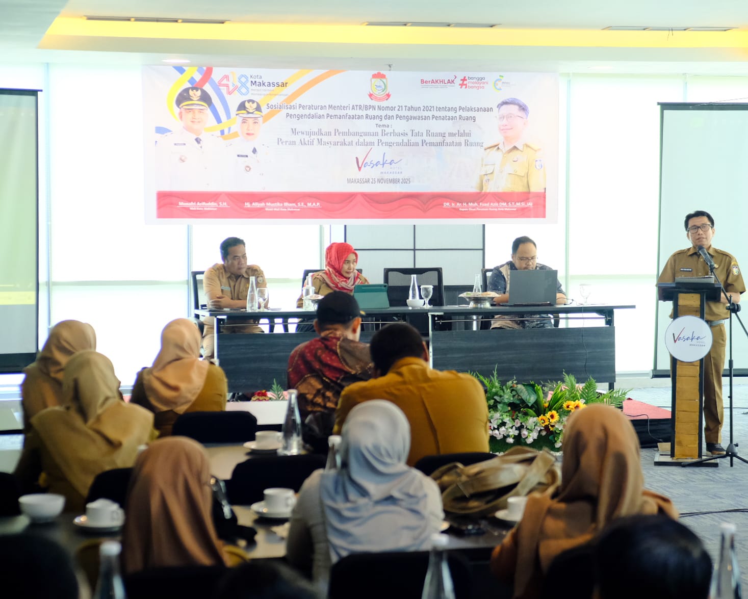Kepala Bidang Pengendalian dan Pemanfaatan Ruang Dinas Penataan Ruang Kota Makassar, Aguz Mulia juga menyampaikan, kegiatan sosialisasi ini diselenggarakan sebagai upaya untuk meningkatkan pemahaman para pemangku kepentingan termasuk pemerintah daerah, pelaku usaha, akademisi, dan masyarakat mengenai substansi dan implementasi Permen ATR/Kepala BPN Nomor 21 Tahun 2021.