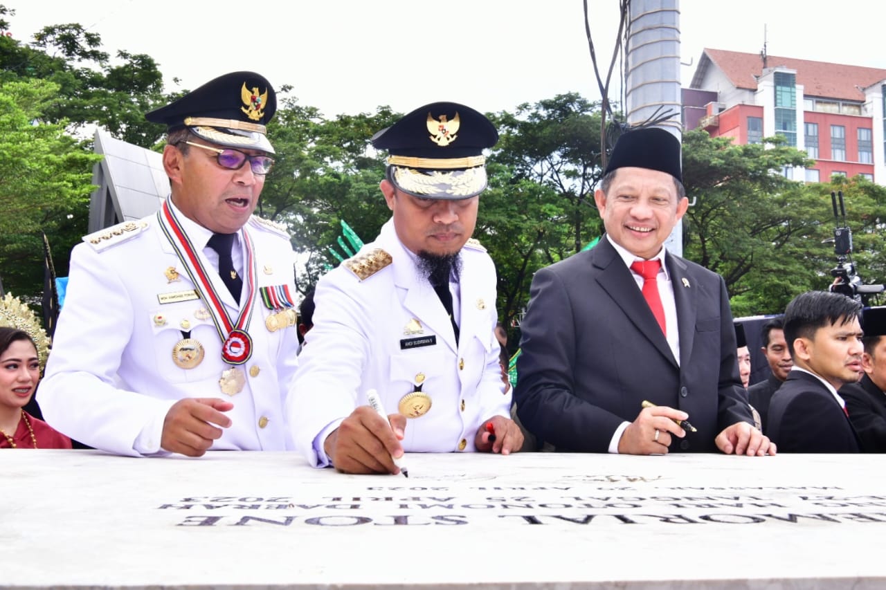 BERITA.NEWS,Makassar- Gubernur Andi Sudirman Sulaiman mengikuti upacara dalam rangka peringatan Hari Otonomi Daerah (OTDA ke XXVII di Anjungan Pantai Losari Makassar, Sabtu (29/4/2023).