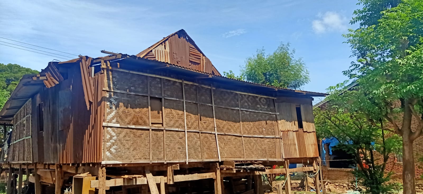 Warga setempat dengan antusias bergotong royong bersama anggota TNI-Polri, bekerja sama dalam membongkar dan memasang atap rumah-rumah yang berada di sekitar Kawasan Industri Bantaeng (KIBA).