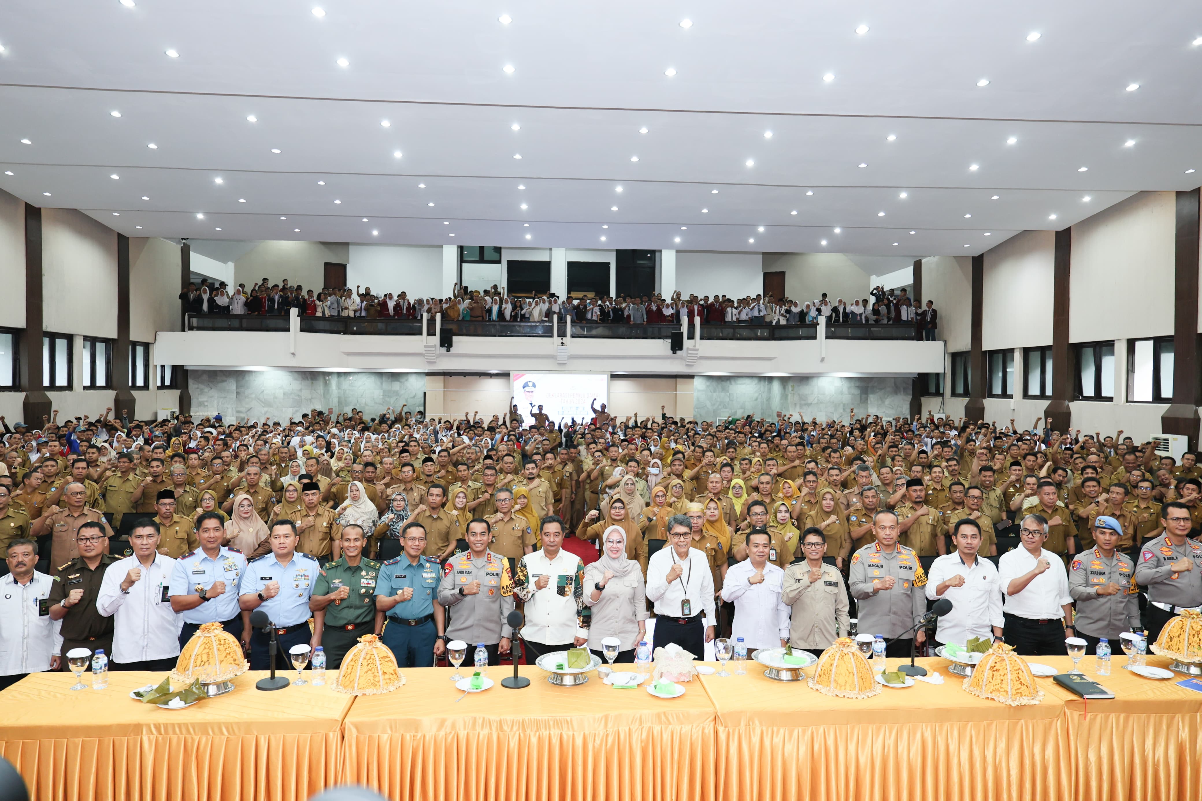 Kegiatan ini juga dihadiri PJ Gubernur, Dr. Bahtiar Baharuddin, M.Si., Pangdam XIV Hasanuddin diwakili Kasdam, Ketua DPRD Sulsel, Pangkoopsud II diwakili Danpom Koopsud II, Danlantamal VI, Danlanud Sultan Hasanuddin, Ketua KPU, Bawaslu, Danlanud, Kabinda, As Intel Kajati, Pengadilan Tinggi Tata Usaha Negara, Hakim Tinggi Pengadilan Agama, para Kepala Sekolah, dan Forum Osis se Sulsel serta sejumlah elemen masyarakat lainnya.
