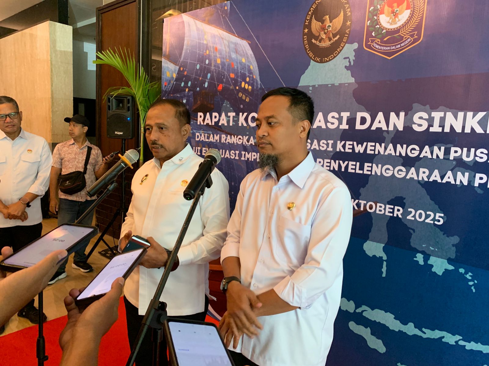 “Hari ini kita memang melaksanakan rapat koordinasi kaitannya dengan sinkronisasi harmonisasi kewenangan pemerintah Pusat dan daerah sekaligus mengevaluasi tentang tata pemerintahan di daerah,” ucapnya.