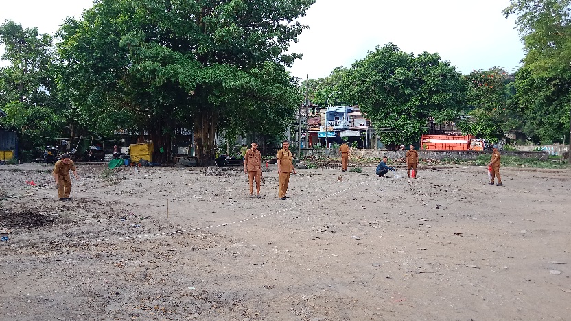 Mereka melakukan pembersihan dan penataan lokasi relokasi Pedagang Kaki Lima (PKL).