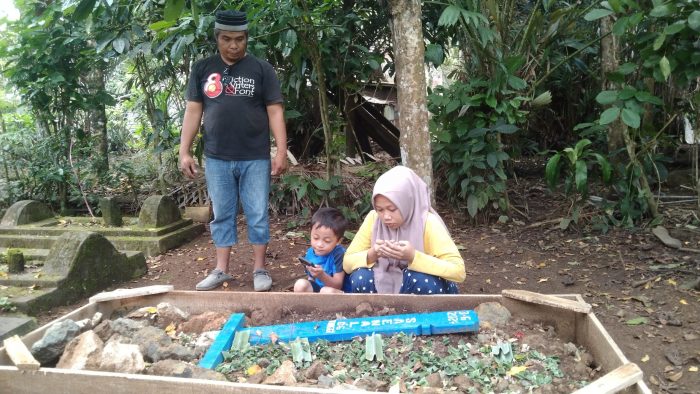 Nurul bersama Anaknya saat Berziarah ke Makam Almarhum Suaminya di Kasimpureng. (Dok. Berita.News/ Syarif)