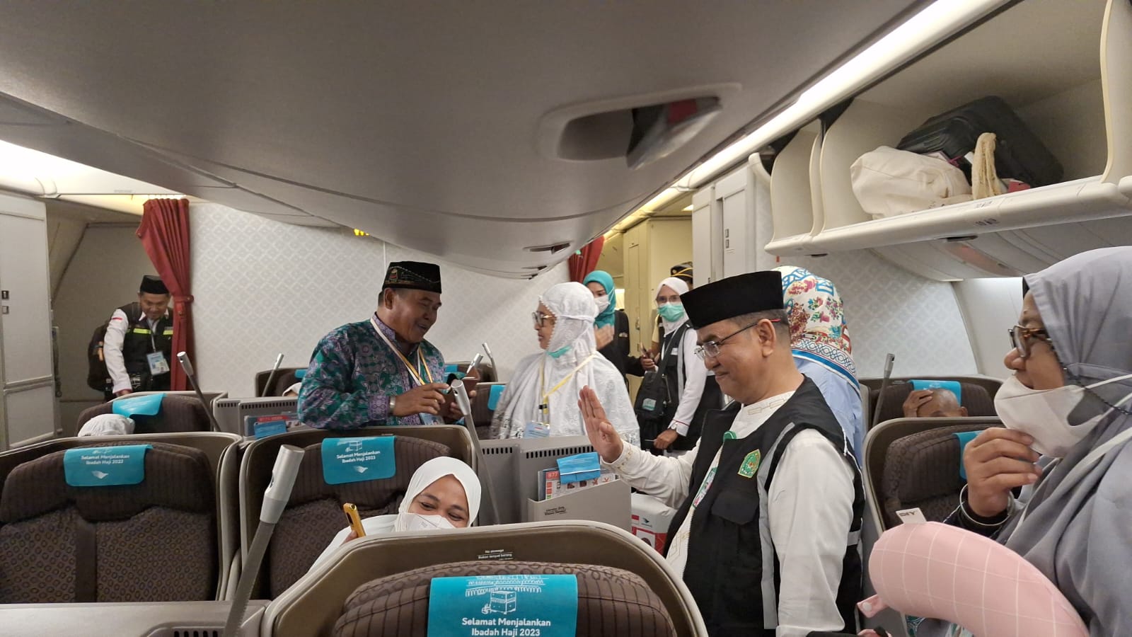 Jemaah haji berada di Pesawat Garuda GIA 1102, berangkatkan pada pukul 22.35 Wita dan diperkirakan tiba di Madinah esok hari 25 Mei 2023 pada pukul 06.10 Waktu Arab Saudi.