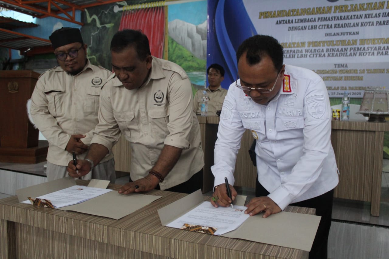 Penandatanganan perjanjian kerjasama tersebut dilakukan oleh Kepala Lapas Parepare, Totok Budianto, bersama Ketua LBH Citra Keadilan, Sabaruddin.