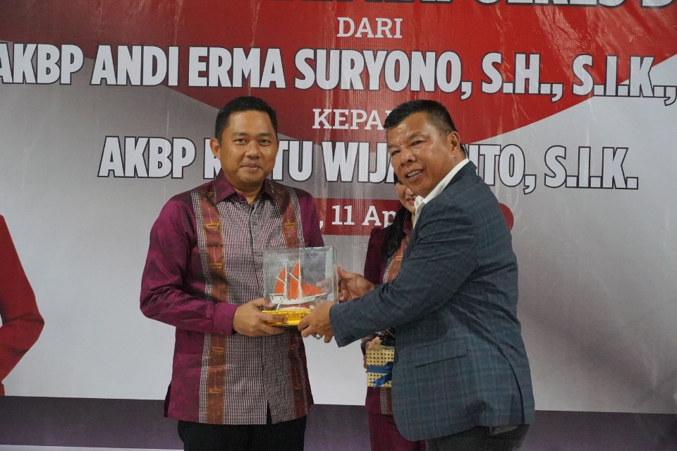 Acara ini menandai pergantian pucuk kepemimpinan dari AKBP Andi Erma Suryono kepada AKBP Restu Wijayanto.