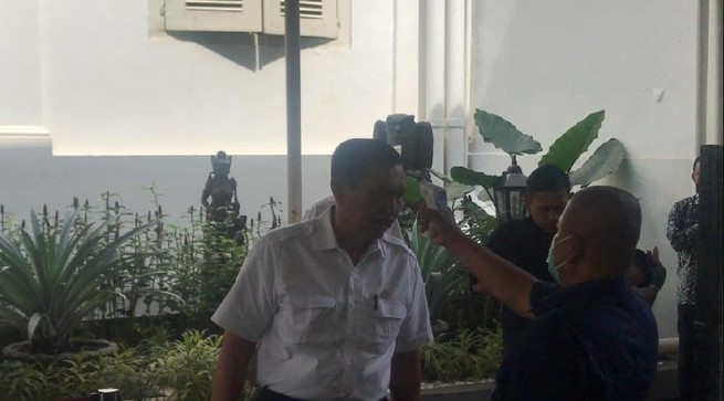 Suhu tubuh para menteri diperiksa. Mereka diperbolehkan masuk karena suhu tubuhnya di bawah 37,5 derajat Celsius.