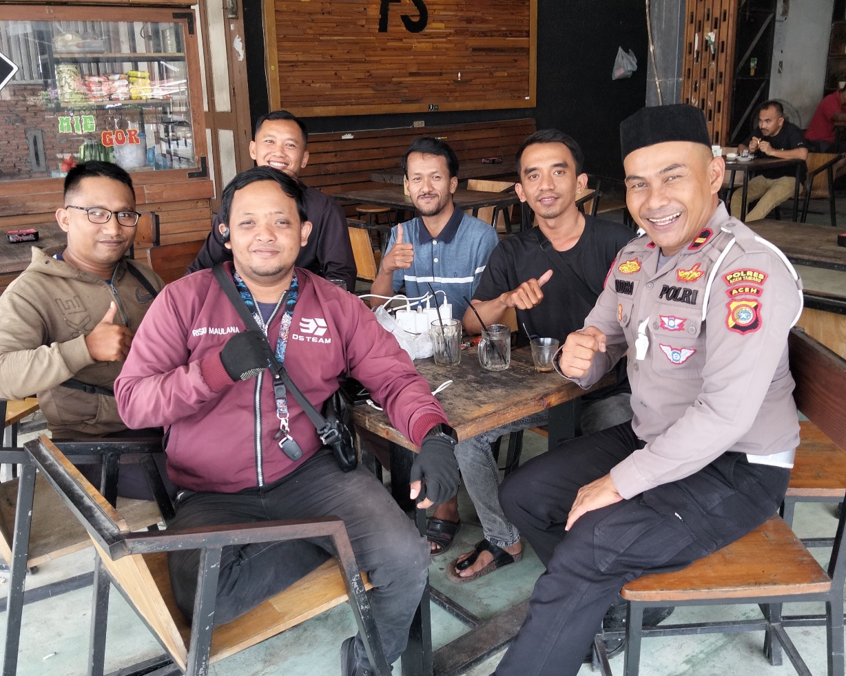 BERITA.NEWS, Aceh Tamiang — Suasana hangat terasa di sejumlah warung kopi di Aceh Tamiang ketika sosok polisi berseragam tampak nongkrong santai sambil berbincang dengan warga.