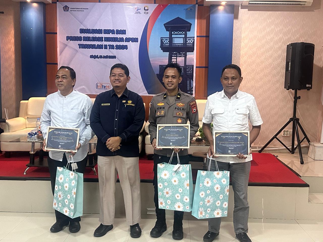 Penyerahan penghargaan diserahkan langsung oleh Kepala KPPN Sinjai, Arif Kurniadi yang diterima oleh Kasi Keu Polres Sinjai Ipda Aswin.