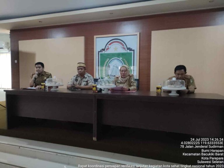 Persiapan verifikasi dirapatkan bersama Pemerintah Kota Parepare, Tim Pembina Kota Sehat, Forum Kota Sehat, dan stakeholder terkait di Ruang Data Kantor Wali Kota Parepare, Senin, (24/7/2023).
