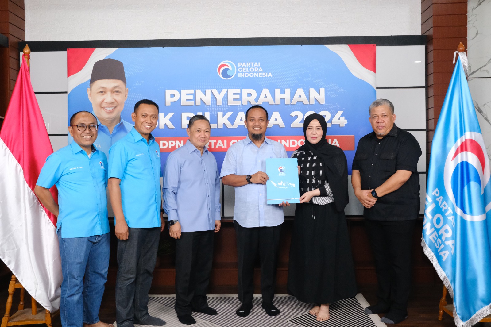 Dewan Pengurus Nasional (DPN) Partai Gelora telah menyerahkan formulir persetujuan partai politik atau B1 KWK yang diserahkan langsung Ketua Umum DPN Partai Gelora Anis Matta di Jakarta, Sabtu 24 Agustus 2024.