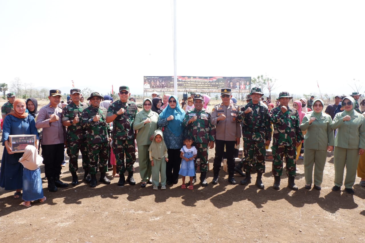 BERITA.NEWS, Jeneponto – Upacara pembukaan TNI Manunggal Membangun Desa (TMMD) Ke-122 Tahun Anggaran 2024 Kodim 1425/Jeneponto resmi dibuka hari ini di Desa Tuju, Kecamatan Bangkala Barat, Kabupaten Jeneponto, Rabu (2/10/2024).