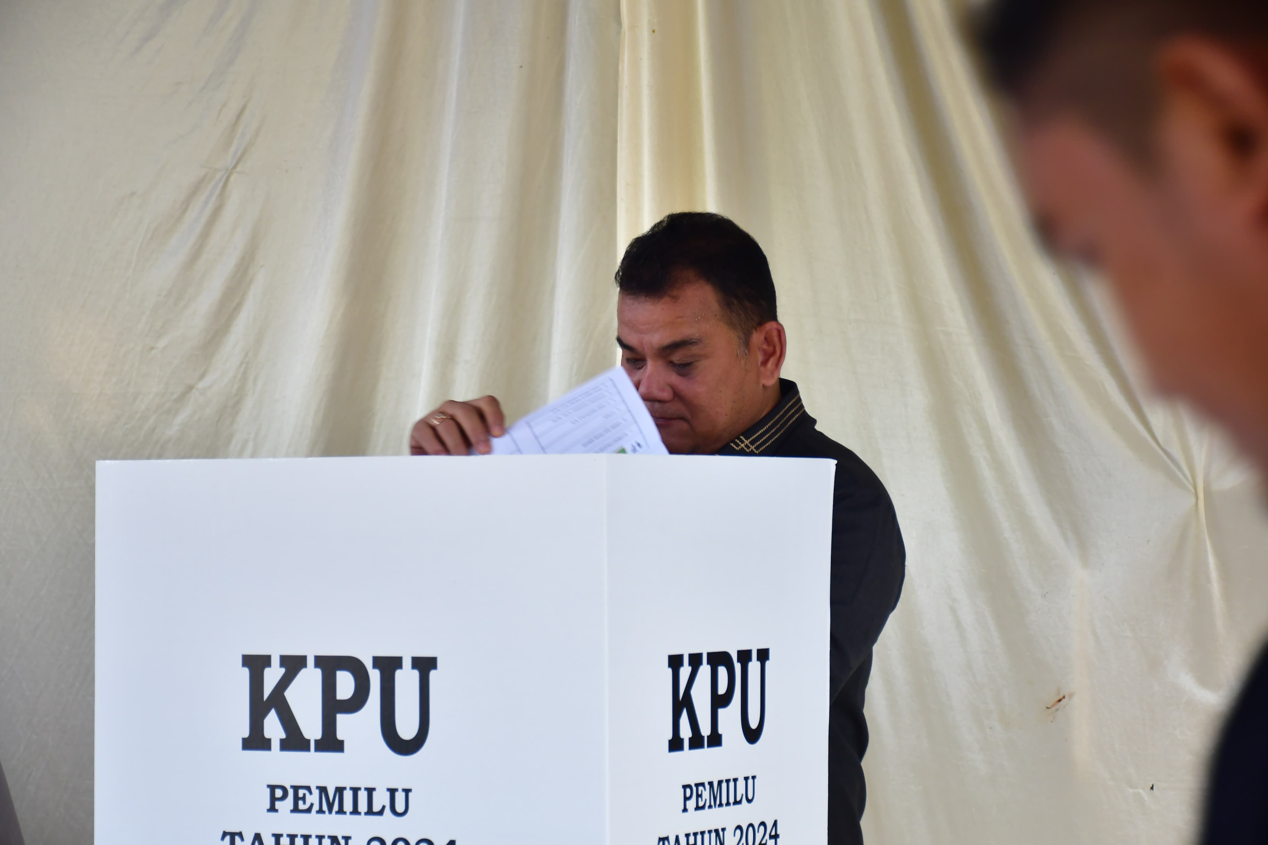 Pria kelahiran Aceh Timur pada 1974 itu mencoblos di TPS 1 Kelurahan Biringere, Kecamatan Sinjai Utara, Rabu pagi (14/2/2024) .