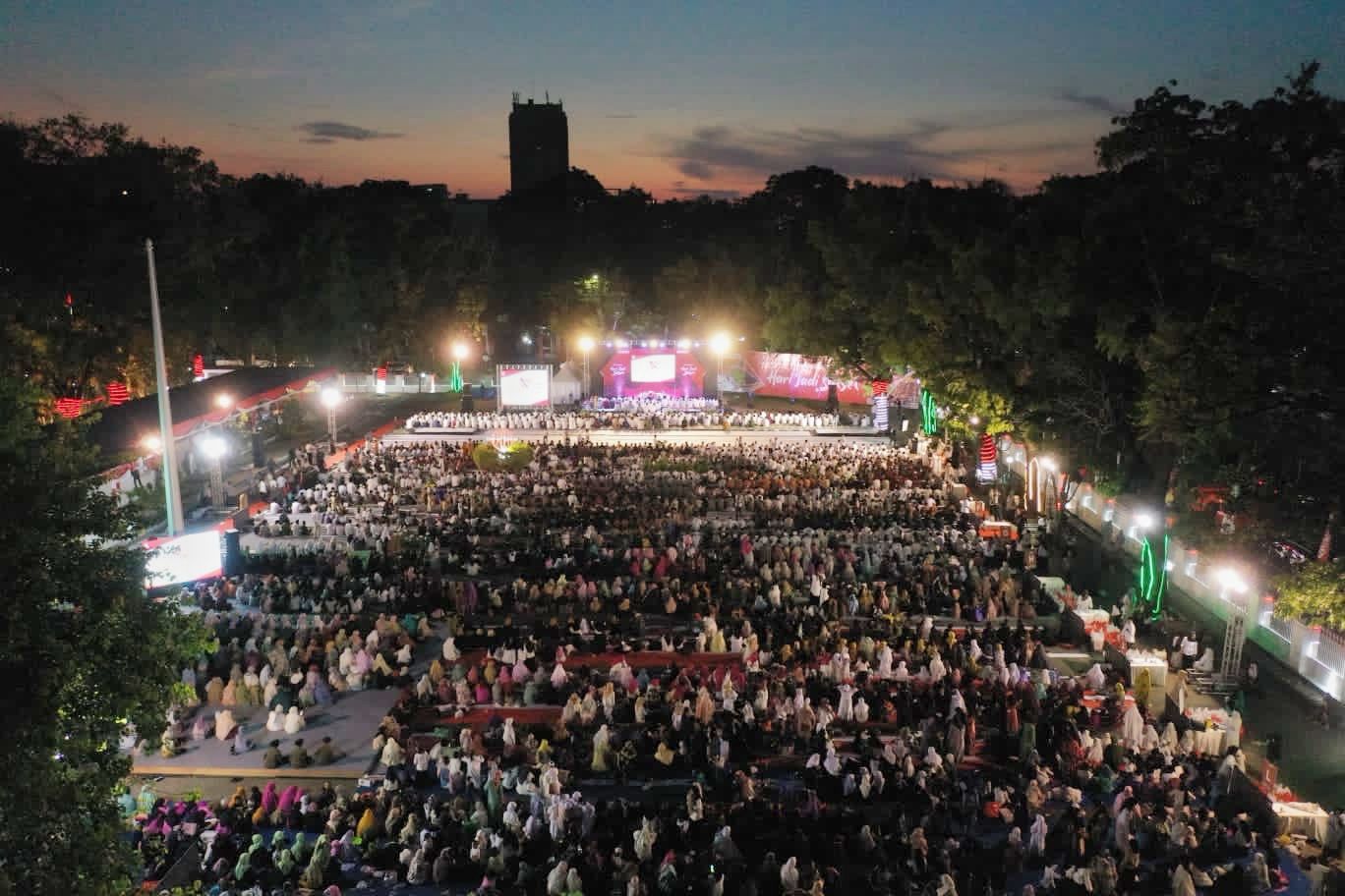 Rangkaian acara diawali dengan sambutan gubernur, sholat magrib berjamaah, taukziah dan doa, sholat Isya berjamaah dan di tutup dengan pembangian santunan kepada 3.540 anak anak yatim piatu.