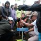 Pengendara yang melintas tampak terkejut saat diberhentikan petugas. Namun, bukan penindakan tilang yang mereka terima, melainkan helm gratis sebagai bentuk edukasi keselamatan berlalu lintas.
