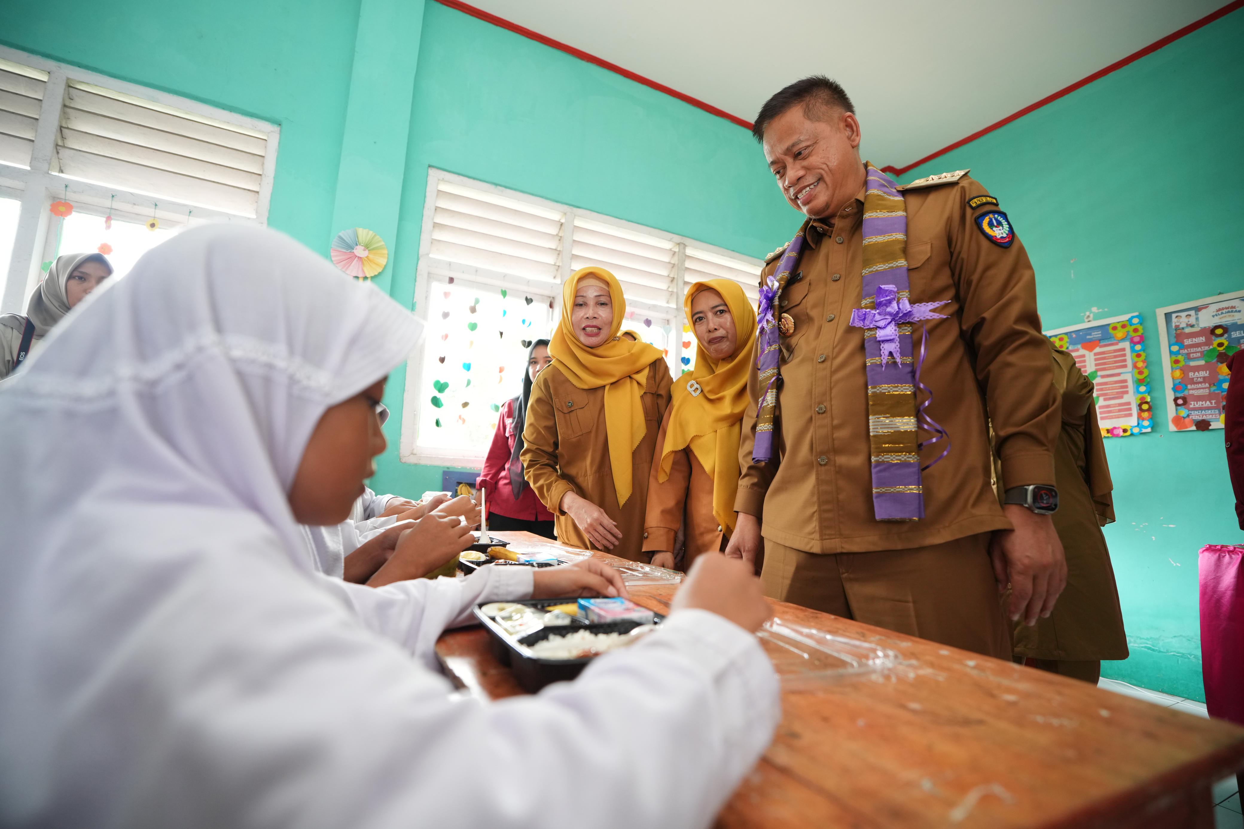 Dalam kunjungannya di SDN 126 Parappunganta tersebut, Prof Fadjry Djufry memberikan semangat kepada para murid untuk menikmati makan bergizi yang disajikan, termasuk item menu berupa sayur yang diberikan.