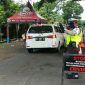 Kepala Desa Batu Rappe, saat menyemprotkan cairab disinfektan ke kendaraan warga yang hendak masuk ke desa. (Ist)