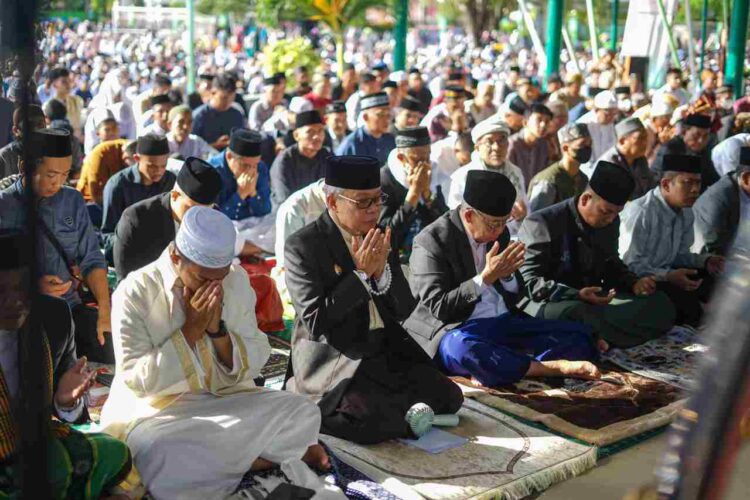 Taufan Pawe dan Masyarakat Shalat Idu Fitri di Alun-alun Lapangan AM