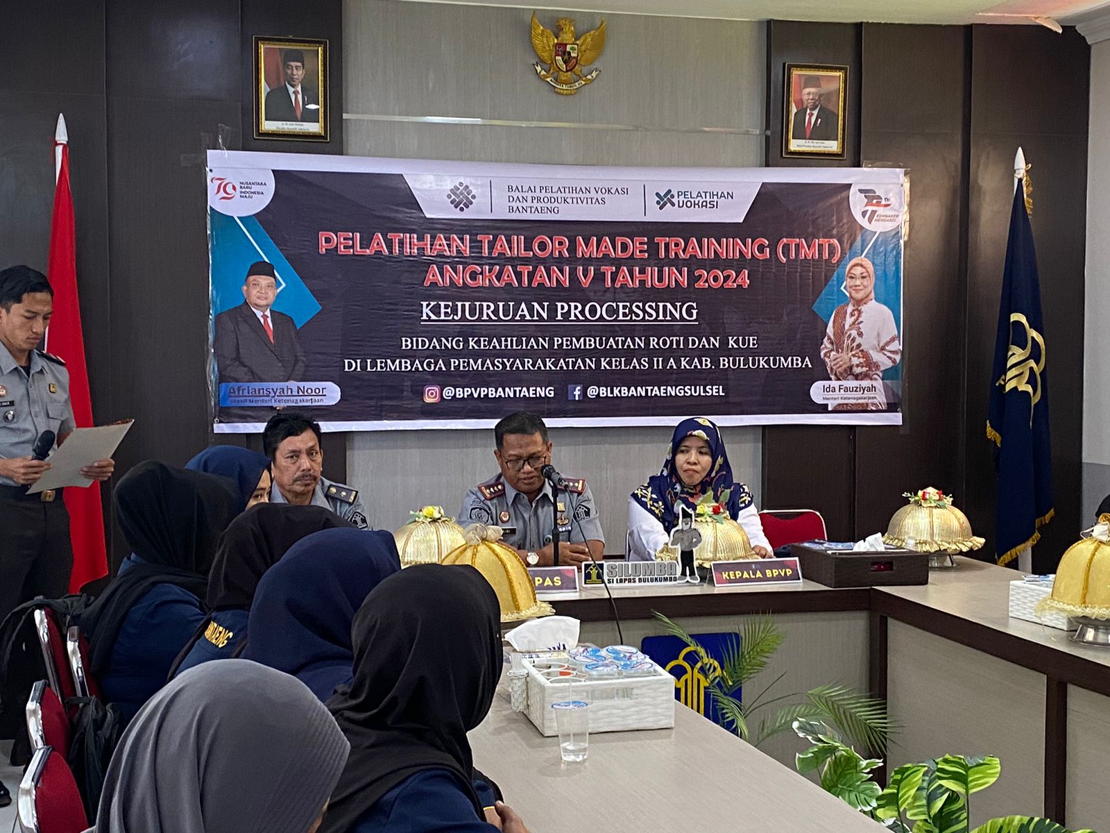 Pelatihan ini merupakan kerjasama antara Lapas Bulukumba dengan Balai Pelatihan Vokasi dan Produktivitas (BPVP) Bantaeng.