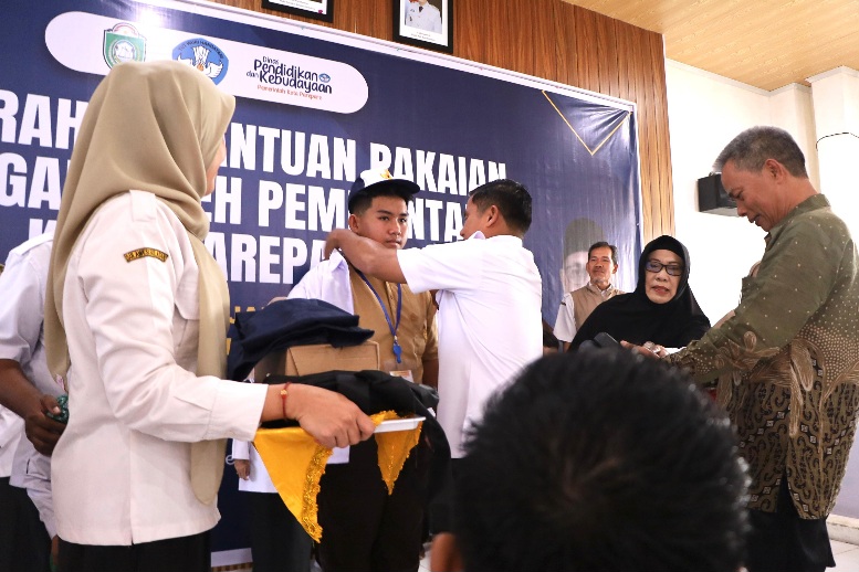 Penyerahan seragam dilakukan langsung oleh Wali Kota Parepare, Tasming Hamid, di Aula Dinas Pendidikan dan Kebudayaan (Disdikbud) Kota Parepare.